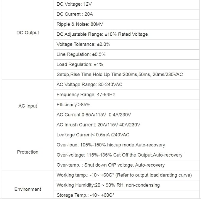 პროდუქტის დეტალები: INPUT: AC90 V-დან 264V-მდე ორმაგი ძაბვის გამომავალი DC12V (რეგულირებადი ძაბვა: მაქს. DC13.8V), 5A 4CH შერწყმული ჩაშენება PTC-ში გადატვირთული Fuse Safe ფუნქციები ძაბვის გადაჭარბებული ან დაბალი ძაბვისგან დამცავი LED-ზედაცვითი დაცვა ჩართვა/გამორთვა სითბოს გამოთავისუფლების სისტემა ჩაშენებული ვენტილატორის გარეშე. უპირატესობა ყველაზე დაბალი ჩარევა მაღალი სიხშირის სიგნალების თავიდან ასაცილებლად, შექმნილია სათვალთვალო სისტემის გამოყენებისთვისმოკლე ჩართვის დაცვა: მოკლე ჩართვის შემთხვევაში, ინდივიდუალური PTC დაუკრავენ წყვეტს წრეს და როდესაც ავარია მოიხსნება, PTC დაუკრავენ ავტომატურად აღადგენს წრეს;მაღალი ძაბვისგან დაცვა: მაღალი ძაბვის შემთხვევაში, დენისგან დაცვა დაირთვება დაკავშირებული მოწყობილობის დასაცავად; დენის გადაჭარბებული დაცვა: დენის გადაჭარბებისას, ელექტრომომარაგება ავტომატურად გადადის თვითდაცვის სტატუსზე, როცა ამოღებულია, შემდეგ დაუბრუნდება ნორმალურ მდგომარეობას;უსაფრთხოების იზოლაციის წინააღმდეგობა:I/P-O/P,I/P-FG,O/P-FG:100M Ohms/500VDC / 25C°/ 70% RH გაუძლო ძაბვა: I/P-O/P:3KVAC I/P-FG:1.5 KVAC O/P-FG:0.5KVAC უსაფრთხოების სტანდარტები: CE,RoHSდაცვა გადატვირთვისაგან: 105%-150% ჩაკეტვის რეჟიმი, ავტომატური აღდგენის ზედმეტად ძაბვა: 115%-135% გამომავალი გამორთვა, ავტომატური აღდგენის გადაჭარბებული ტემპერატურა. : O/P ძაბვის გამორთვა, ავტომატური აღდგენა. ეს კვების წყარო ფართოდ გამოიყენება LED დეკორაციის/განათების ინჟინერიაში/LED რეკლამაში/საკომუნიკაციო აღჭურვილობაში/CCTV სისტემაში<